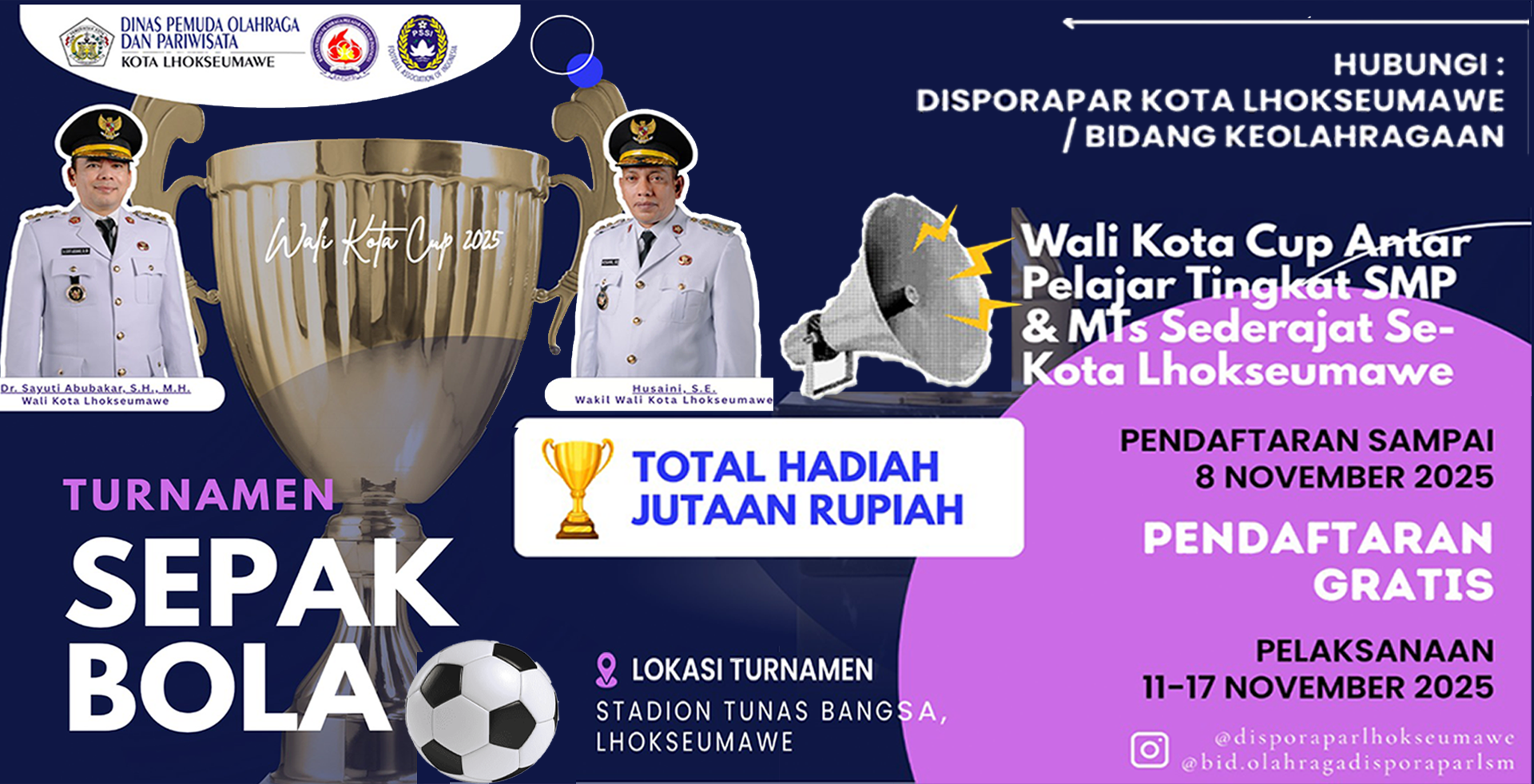 Turnamen Sepak Bola Wali Kota Cup 2025 Turnamen Sepak Bola Wali Kota Cup 2025 Dinas Pemuda, Olahraga, dan Pariwisata (Disporapar) Kota Lhokseumawe melalui Bidang Keolahragaan kembali menggelar Turnamen…