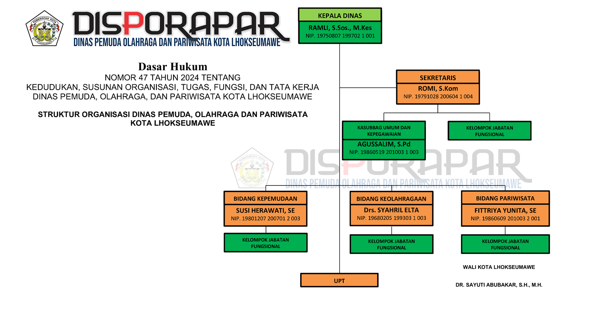 Struktur Disporapar Kota Lhokseumawe 15-10-2024 16:25:28 Struktur Dinas Pemuda, Olahraga dan Pariwisata Kota Lhokseumawe